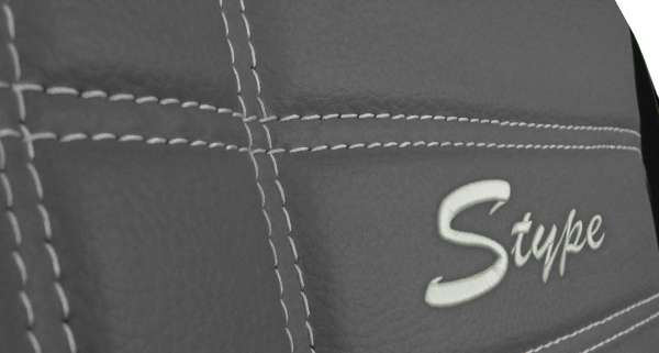 Predné poťahy sú ozdobené nápisom ,,S TYPE,, ktorý je vytváraný počítačovou technikou.